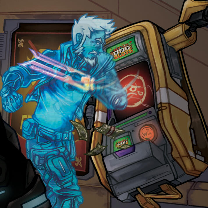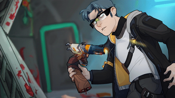 Tweened/transformed movement animation of your splash card, animated in the style of the Borderlands games.